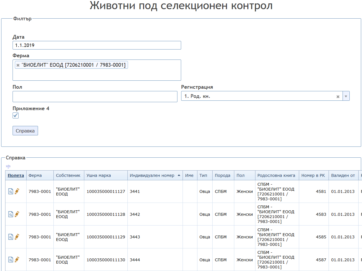 - „Събития по животни“ (раждане, смърт, внос, износ и др.);